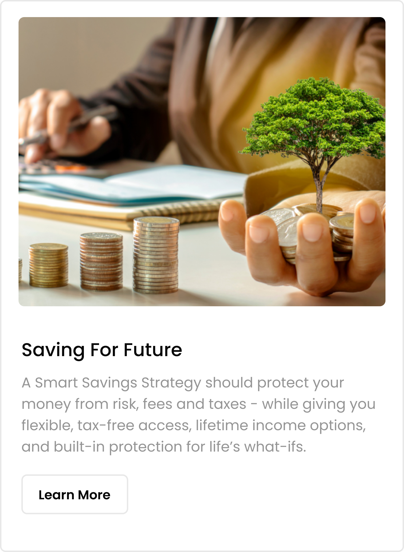 A 401(k) is tax-deferred, not tax-free — which means you'll pay taxes later, potentially at higher rates. You also don't want to gamble your retirement to the volatility of the market. Our strategy helps you diversify your tax exposure, reduce future tax risk, access your money without penalties or age restrictions, and protect your principal.
