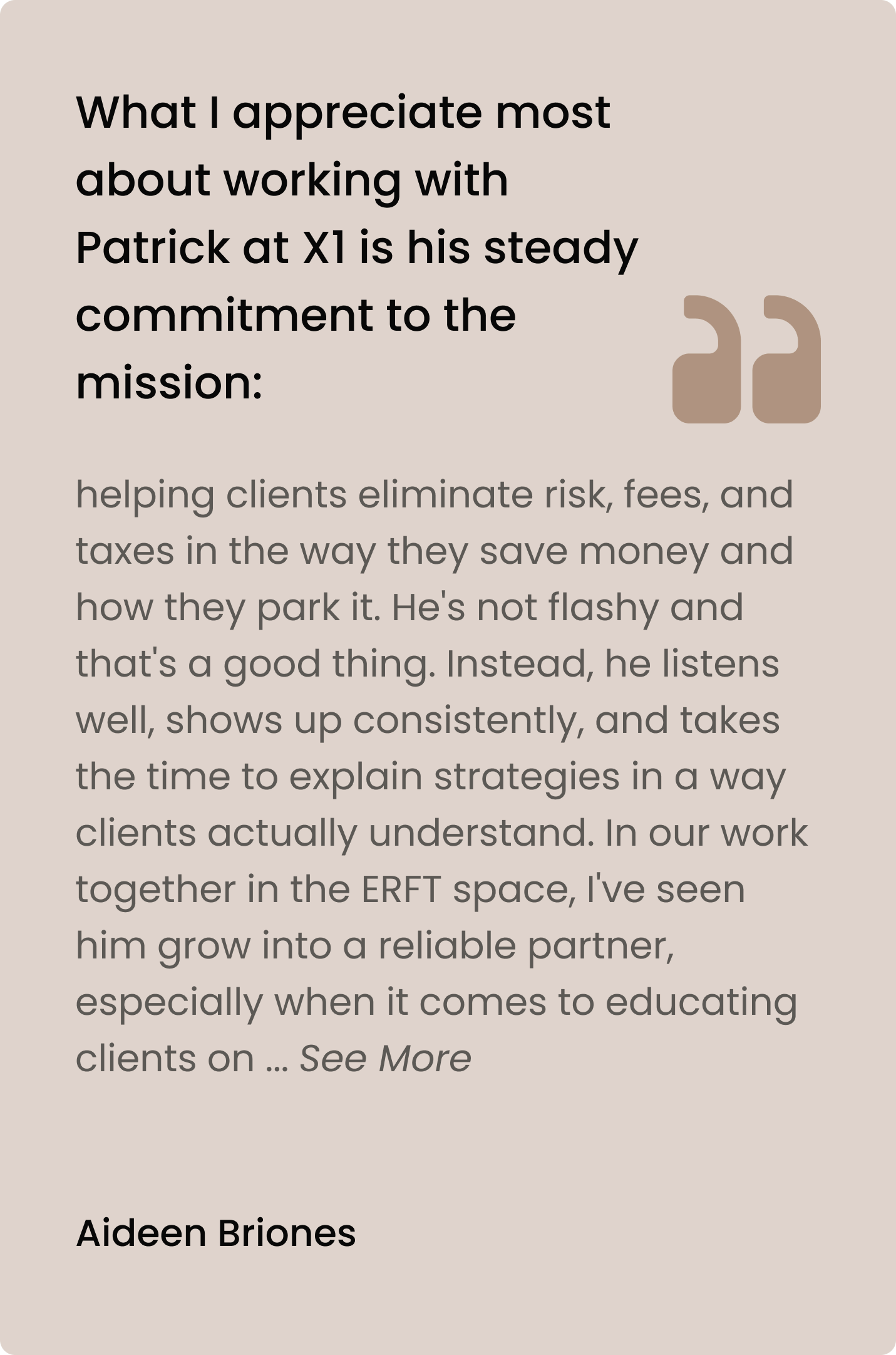 Everyone’s results vary based on age, contributions, and goals — but our clients often see 30–40% more capital preserved by avoiding unnecessary taxes, fees, and market losses. We walk you through real projections based on your specific numbers.