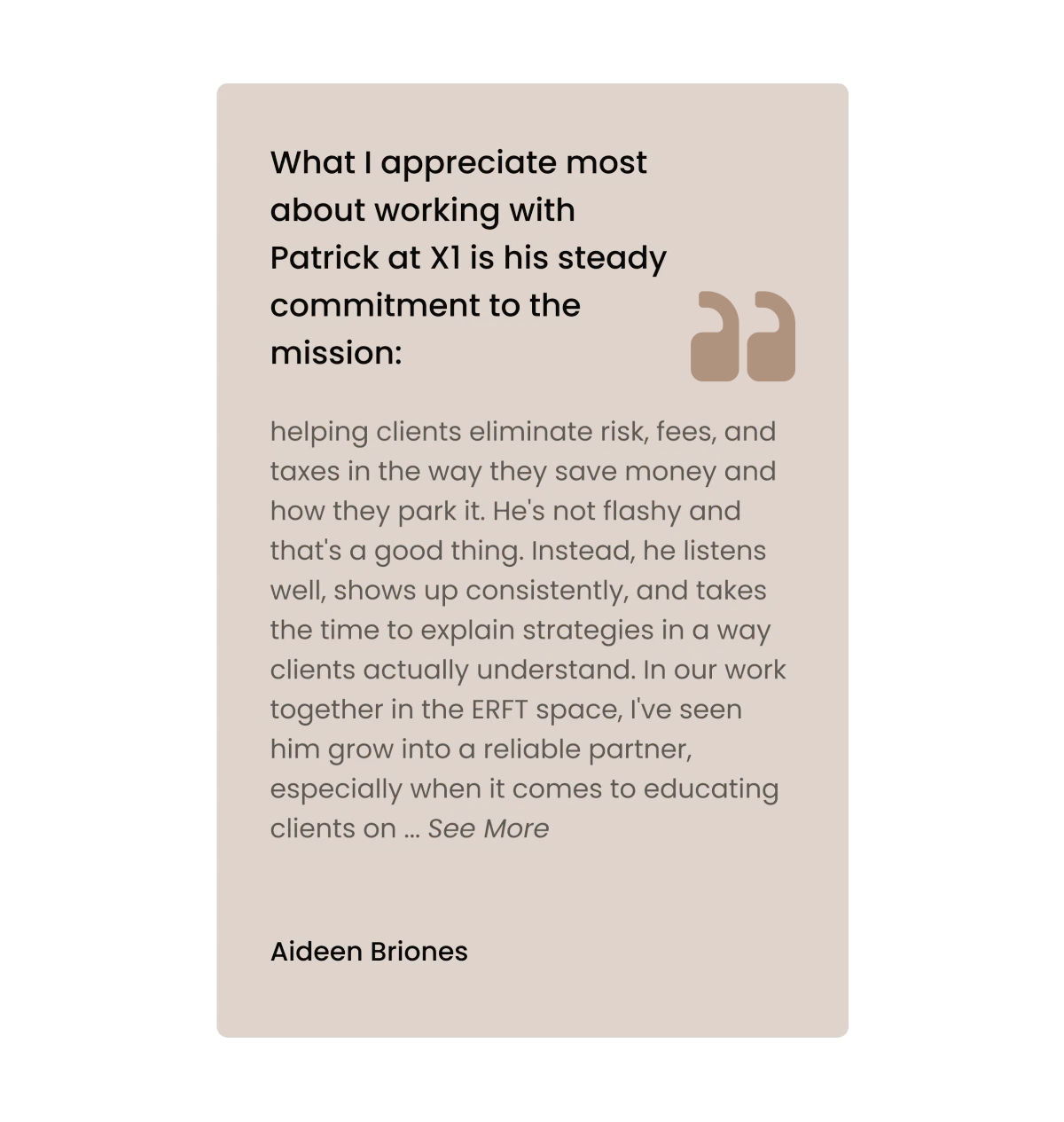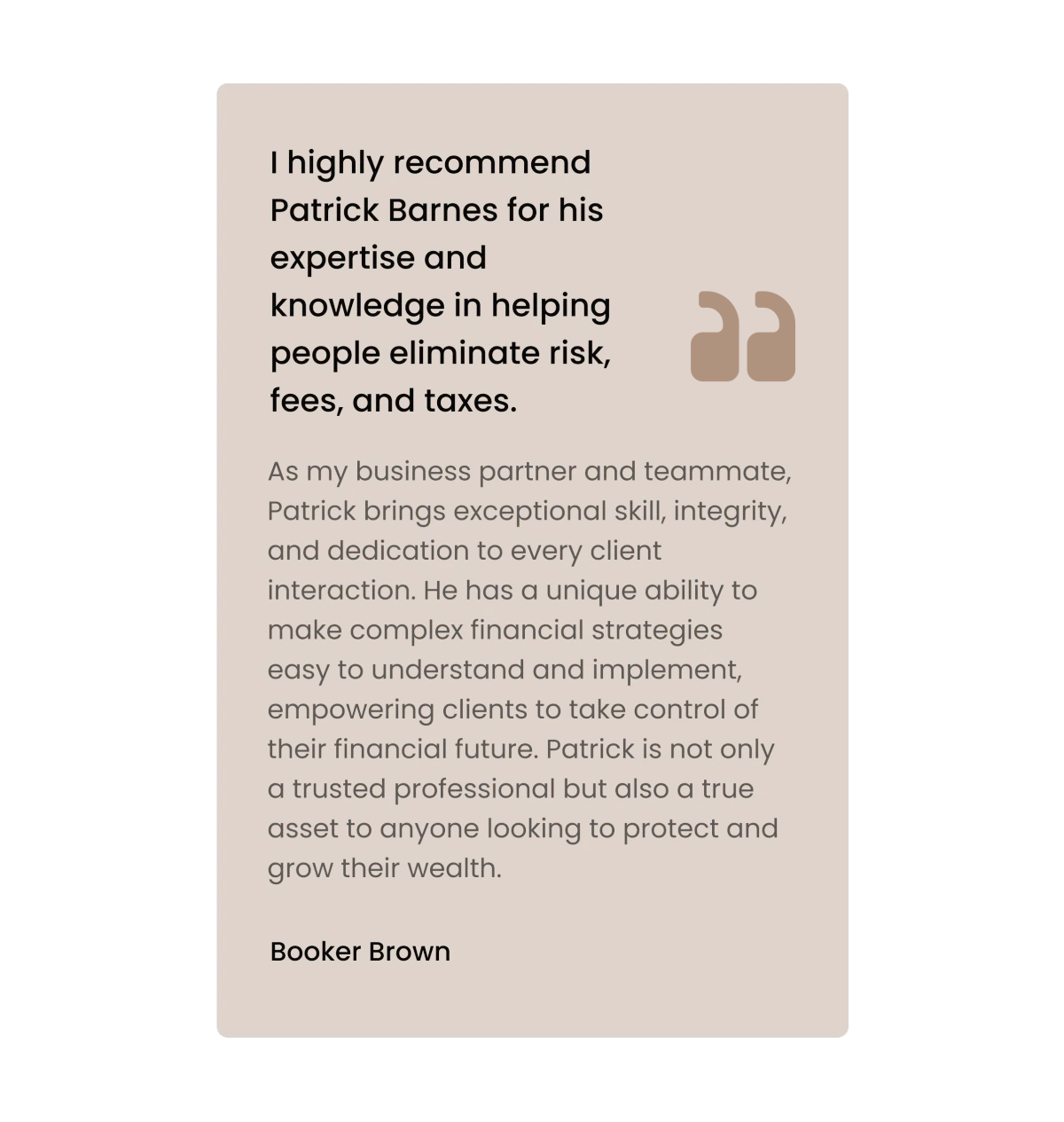 Everyone’s results vary based on age, contributions, and goals — but our clients often see 30–40% more capital preserved by avoiding unnecessary taxes, fees, and market losses. We walk you through real projections based on your specific numbers.